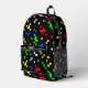 Classic video game fans will love this fun, retro style 8-bit graphics pattern in bright colors on a custom backpack. The simple, square shapes stand out on a black background. You can adjust the size of the pattern on each panel or delete it for a solid color if you prefer. It's a fun design for any gamer! Great for school, travel, and more!