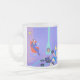 Diese Retro Abends-zu Hause mattierte GlasTasse sieht wie eine Szene aus einer Sechzigerjahre romantischen Komödie heraus aus. Die unbedeutenden Ausrüstungsbeschreibungen ein attraktives Cartoonpaar im Wohnzimmer eines modernen Hauses der Mitte des Jahrhunderts. Der Raum kennzeichnet vorstehend eine lila und blaue Steinwand und ein Zusammenbringen der lila und blauen gestreiften Wolldecke. Gegen die Wand gibt es einen Türkis, kegelförmiger Kamin mit einem Brüllenfeuer. In der Ecke lounging der höfliche Mann des Hauses in einem roten Eistuhl. Er trägt einen blauen Anzug mit einer blauen Krawatte. In einer Hand hält er einen Martini Glas. Kein Wunder ist er so entspannt! Von der Decke hängen, gibt es ein Gelb, Sputnik-Leuchte. Eine Frau mit einer Hourglaßzahl sitzt auf der Wolldecke. Sie trägt ein vibrierendes, blaues Kleid und nicht ist ein Haar aus Platz in ihrer flippy Blondine heraus "tun". Neben ihr auf dem Boden, gibt es einen blauen und schwarzen tragbaren Rekordspieler. Einige VinylRekordalben werden nahe dem schönen Diskjockey zerstreut. Gehen Sie voran und singen Sie entlang. Sie wissen, dass Sie zu wollen!