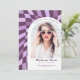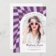 Lila Schachbrett Retro Abschluss Ankündigung mit Arch Foto. In einem lila und weißen Farbschema dargestellt, aber ALLE FARBEN SIND mit dem Bearbeiten-Tool EDITABLE. Personalisieren Sie sich mit Abschluss Jahr, Name, Schulinformation und Foto. © Kimbellished, LLC