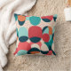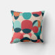 Soft yet striking, this "Retro Shapes" throw pillow features a rhythmic, overlapping pattern of smooth pebble and egg silhouettes. The organic, rounded forms are rendered in a sophisticated mid-century palette of muted teal, vibrant coral, terracotta, and deep midnight navy. Playful clusters of stippled dots add texture and movement to the composition, set against a warm cream background. This design perfectly captures the cheerful, optimistic aesthetic of vintage abstract art, offering a refined pop of color and shape for any modern living space.