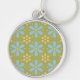 Retro Abstrakt Blau und Gelb Blumen auf Grün Schlüsselanhänger