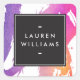 Koordiniert bis 1201Uhr mit dem Retro Abstrakt Bright Watercolor Pinselstriche Business Card Template. Dieses edgy Design besticht durch einen auffälligen Hintergrund mit lila und rosafarbenen Pinselstrichen mit schwarzem Plaque-Overlay, um Ihren Namen oder Firmennamen zu tragen. Diese Aufkleber eignen sich hervorragend zum Hinzufügen Ihrer Marke zu Produkten und Packungen, zum Personalisieren von Büromaterial, zum Abdichten von Umschlägen und vielem mehr. Für Designanfragen oder Fragen wenden Sie sich bitte an uns unter www.1201am.com. Copyright © 1201AM CREATIVE