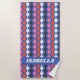 Retro Abstrakte Streifen Blau Rosa Personalisierter Name Badetuch