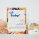 Retro Künstlerische Abstrakte botanische Niedliche Babydusche Einladung in Blau, Orange, Rosa und Gelb