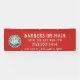 Horizontales Abzeichen mit rotem, weißem und blauem Retrostil auf rotem Hintergrund. Mit dem Namen und den Details des Barbershops individuell anpassen.