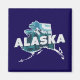 Der Square Kühlschrankmagnet weist eine landschaftliche Silhouette des Alaska-Staat im Retro-Stil auf einem dunkelblauen Hintergrund auf (die entfernt oder auf eine andere Farbe Ihrer Wahl angepasst werden kann). Ideal für Urlaubssouvenirs, Gastgeschenke Hochzeiten (mit personalisiertem Text) und vieles mehr.