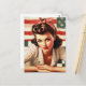 Retro American Girl Button Up Art Postkarte