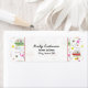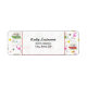Ein Adressetikett, das ein Muster mit Illustrationen von Vintagen Campern, rosa Flamingos, Bienen und Blume enthält.