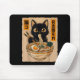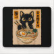 Retro Anime Kawaii Black Cat Eating Ramen Noodles Mousepad