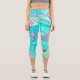 Retro Aqua Blue Liquid Art on Abstrakt Hydrangeas Capri Leggings