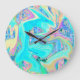 Retro Aqua Blue Liquid Art on Abstrakt Hydrangeas Große Wanduhr