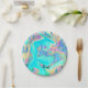 Retro Aqua Blue Liquid Art on Abstrakt Hydrangeas Pappteller