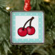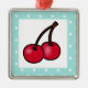 Retro Aqua Dots Cherries Ornament Aus Metall