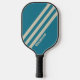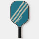 Retro Aquamarine Drei Streifen mit Namen Pickleball Schläger