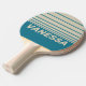 Retro Aquamarine Three Horizon Striping with Name Ping Pong Paddle evokes the calm yet lively rhythm of a clear ocean horizon, with horizontal patterns in vibrant aquamarine tones that flow gracefully with each swing. Personalized with a name, it reflects your individuality and style, bringing a sense of serene energy and dynamic presence to every rally. Whether in spirited matches or relaxed play, this paddle adds color, movement, and a refreshing, invigorating character to every moment on the table.