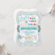 Retro Aquamariner Storch; hellgraue Damast Babydus Einladung