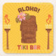 Dieser Untersetzer kennzeichnet ein retro Art Aloha Tiki Barplakat, mit einem tiki Kopf und tiki Fackeln, auf einem gelben Sonnendurchbruchhintergrund.