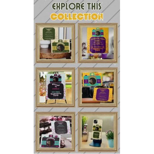 Überraschen Sie die Absolventin, mit der Sie belohnen wollen, ob diese Person ein Familienmitglied ist oder eine Freundin, die Vintage Kunst und Fotografie Liebe, indem sie ihr diesen einzigartigen und trendigen, benutzerdefinierten T - Shirt. Der Retro-inspirierte und nostalgische Stil des Designs mit den Kamerafarben, Gratulationstext und Farbschema aus grün, gelb und beige kreativ Pop gegen den Baumwollstoff, was dieses Abschlag zu einem phantastischen Statement-Stück macht. Dieses ideale Geschenk Shirt wird sicherlich nie außer Mode gehen und könnte die Absolventen perfekt fühlen, weil Sie ein Foto von ihr hinzufügen können, sodass sie persönlich diese und machen es ihr neues Lieblings-Kleiderheft.