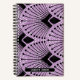 Retro Art Deco Lila Schwarz-weißes Pfauenmuster Notizbuch