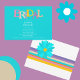 Farbenfrohe türkisfarbene zeitgenössische Retro Art Deco Bridal Dusche Einladung. Türkisfarbener Hintergrund Modernes Design