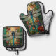 Retro Art Nouveau Dragonfly boho chic Ofenhandschuh & Topflappen-Set