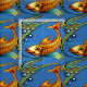 This colorful retro design was derived from a black and white art nouveau koi fish and seaweed pattern by Mabel Syson found in an antique publication. You can customize the background color.