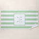 Erstellen Sie Ihr eigenes personalisiertes Badetuch mit Ihrem individuellen Monogramm-Initial und dem Namen auf einem rtro-gestreiften Hintergrund in ästhetisch grün und weiß