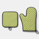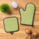 Retro Ästhetisches Karton Muster Grün und Weißes Ofen Mitt & Pot Holding Set