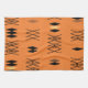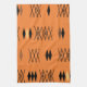 Dieses moderne Muster aus den 1950er Jahren weist schwarze, kreuzende Linien und Diamanten auf, die gelb und braun auf orangefarbenem Hintergrund sind.