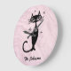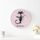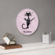 Fifties retro look black cat personalized kitchen clock in pink.