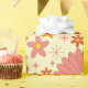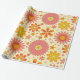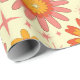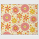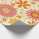 Add atomic groovy charm to your gift wrap with this wrapping paper featuring retro 70s groovy flowers in coral pink, mustard yellow and orange pattern with atomic starbursts on light cream background. Perfect for retro themed birthdays, anniversaries and celebrations