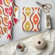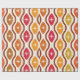 Es handelt sich um ein elegantes, modernes, atomares Sternexplosionen-Muster, das auf farbigen Ogeeovalen in orangefarbenen, gelben, roten und braunen Formen angeordnet ist.