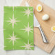 Es handelt sich um elegante Sternexplosionen aus der Mitte des Jahrhunderts, die aus weißem Kalkgrün bestehen. Es ist großartig aussehendes Küchentuch für Frauen, die Liebe Retro entwirft