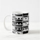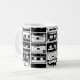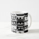 Retro-Audiobänder, altmodisches Muster. Kaffeetasse