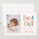 Feiern Sie Ihren neuesten kleinen Segen mit dieser modernen und spielerischen Geburtsanzeige als Feiertagskarte. Mit einem farbenfrohen „Bestes Geschenk“-Design und Platz für das Foto Ihres Babys wird die Freude über die Ankunft zu Weihnachten perfekt eingefangen. Ideal zum Teilen des Namens Ihres Neugeborenen, der Geburtsdetails und der ersten Weihnachtsgrüße mit lieben Menschen. Fügen Sie Ihren individuellen Text hinzu für ein Erinnerungsstück voller Wärme und Freude. Personalisieren Sie Ihre heute.