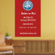 Das stilvolle Wandplakat mit rotem, weißem und blauem Retro-Abzeichen im Retrostil auf rotem Hintergrund ist modern eingerichtet und eignet sich hervorragend als Marketing für Ihren Friseursalon oder andere Männer. Anpassung an Firmendetails