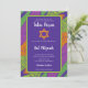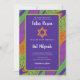 Stell dich mit dieser einzigartigen, lustigen Retro-Bat Mitzvah-Einladung heraus. Es zeichnet sich durch ein lila, grünes und orangefarbenes Hintergrunddesign aus, das Sie durch die Erholung Ihrer Veranstaltung führen können. Von der Dekoration des Party bis zur Tischdekoration sind Ihre Möglichkeiten endlos. Ihre Tochter wird begeistert sein von dieser lustigen und aufregenden Einladung für ihren besonderen Tag.