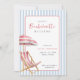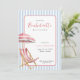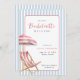 Niedliche Retro-Moderne rosa und blau Bachelorette oder Geburtstagswochenende mit einfacher und einladender Aquarellliege und Regenschirm.