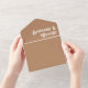 Dieser Retro-Strand | Braun Siegel und senden Sie alles in einer Einladung ist perfekt für Ihre einfache Vintage, farbenfrohe tropische boho Sommerhochzeit. Sein einzigartiger böhmischer Schriftart aus der Mitte des Jahrhunderts verleiht diesem Design eine klassisch minimalistische Hippie-Atmosphäre. Nehmen wir an, Sie suchen ein Design, das helle, rustikale Farben für den Küstenmeer für Ihre kreative Strandhochzeit in den 70er Jahren bietet. In diesem Fall sind dieses Produkt und seine koordinierende Hochzeitskollektion das, was Sie suchen. Fühlen Sie sich frei, die Farbe ändern, fügen Sie Ihre eigenen Kunstwerke, Grafiken, oder Fotos. Wenn Sie Fragen zum Design dieses Produktes haben, können Sie sich gerne an uns wenden!