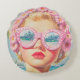 Retro Beach Girl mit Blumenbrille Rundes Kissen