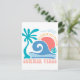 Erleben Sie die Wärme des Sommers mit dieser charmanten Postkarte im Retro-Stil. Mit einer nostalgischen Strandszene mit einer Palme, die in der Brise schwingt, sanften Wellen, die auf das Ufer rollen, und einer hellen Sonne über dem Meeresspiegel, erfasst diese Postkarte den sorglosen Geist des Küstenlebens. Ideal, um einen sonnigen Gruß an Freunde und Familie zu schicken oder als Mini-Kunstwerk behalten, um Ihren Platz mit Strandbänken zu erhellen.