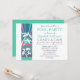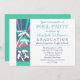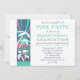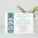 Retro Blick Strand Szene Graduation Party Design. Die Strandlandschaft im Retrostil ist blau, aquamarin und rosa mit Palmen und einer Schildkröte. Ideal für Partys mit Pool und Strand. Design by Holiday Hearts Designs (Rechte vorbehalten).
