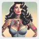Retro Beauty Tattooot Button hoch Quadratischer Aufkleber