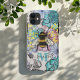 Elegante Vintage Blume und Hummeldesign für die Person, die die Retro-Ästhetik Liebe. Original Aquarell und Bleistiftkunst mit großen Pfannenbäumen und Gänsebläschen in kräftigem Grün, Rosa und Duskyblau. Diese Blume sind in einer authentischen Zeitung aus den 20er Jahren ausgestellt. Fügen Sie einfach Ihr persönliches Monogramm hinzu, um dieses Objekt einzigartig zu machen.