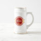 Rotes Bierlogo im Retrostil mit diagonalen Streifen, Blattverzierung und Stern.