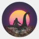 Retro Bigfoot Sasquatch Riding The Loch Ness Monster Funny Gift Classic Round Sticker Classic Collection.