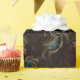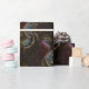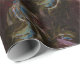 Atomische Wirbel, Raumzeit im 50er, modernes Retromuster Mitte des Jahrhunderts. Schwarz mit lila, blauen, gelben Wirbel.