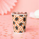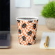 Dieses Vintag inspirierte Muster zeichnet sich durch charmante, schwarze Katzengesichte mit großen, breiten Augen und offenen Mäulern aus und verleiht ihnen so einen überraschenden und aufregenden Eindruck. Die Katzen sind Set gegen einen lebhaften, retro-orangen und cremefarbenen Hintergrund mit einem gewölbten, verzerrten Effekt, der ein Gefühl von spielerischer Bewegung hervorruft. Kleine schwarze Sterne verteilen sich über das gesamte Design und fügen ein zusätzliches Element aus Launen und Nostalgie hinzu. Die Kombination der klassischen Halloween-Farben mit den kühnen, stilisierten Katzengesichtern schafft eine lustige, leicht spöttische Ästhetik, die bis ins Vintage Design der Mitte des Jahrhunderts zurückreicht.