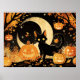 Retro Black Cat with Jack-o’-Lanterns Poster