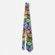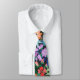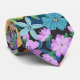 Krawatte mit Blumenmuster in Rot, Orange, Gelb, Grün, Blau und lila, gezeichnet in einem Retro-Look vor dunklem Hintergrund. Ideal für Hochzeiten mit Gay oder Stolz!